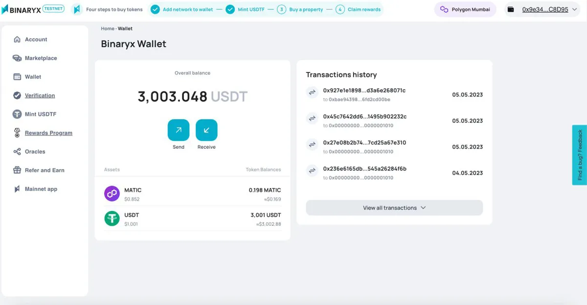MetaMask which is usually used by web3 enthusiasts may become an obstacle to real estate investing when it comes to non-crypto audiences. That’s why we built the Binaryx Wallet so everyone can use our platform without the hassle of installing MetaMask. Our wallet is non-custodial, so investors are in full control of their tokens.