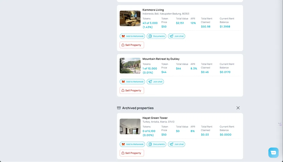 We’ve introduced an Archive section in your Portfolio. Properties you no longer own (with zero tokens) will automatically move to the archive.