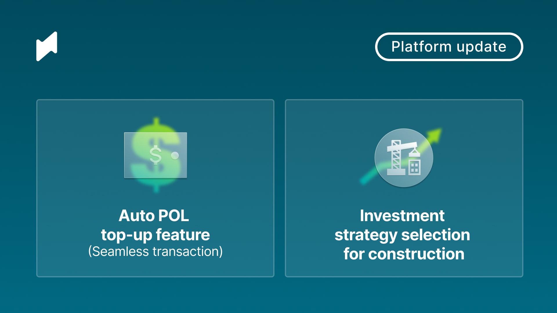 Starting May 29, users investing in Dukley Mountain Retreat will be able to choose their preferred Investment Strategy directly during the investment process.
