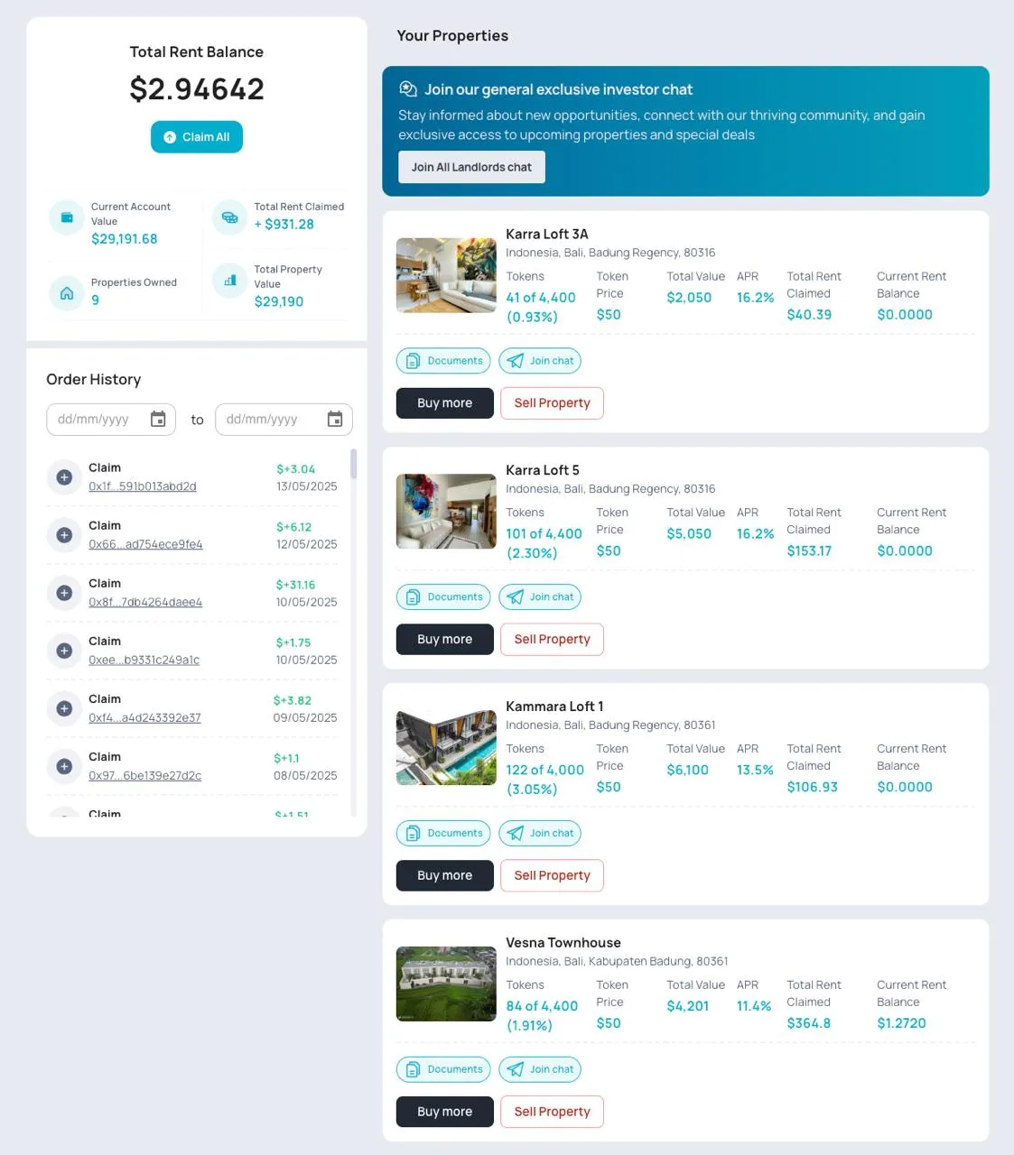 "J'ai décidé d'investir dans l'immobilier tokenisé parce que c'est un nouveau domaine pour moi. Plus la diversification des actifs. Je considère ce domaine assez prometteur à l'avenir — donc je voulais être l'un des premiers."