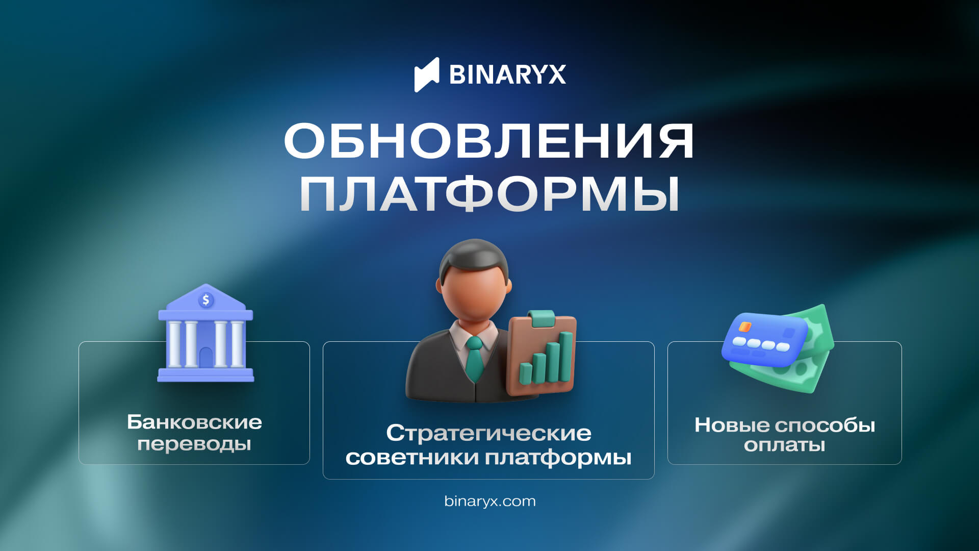 И приготовьтесь к тому, что в следующем обновлении на платформе Binaryx появится еще больше способов пополнения счета.