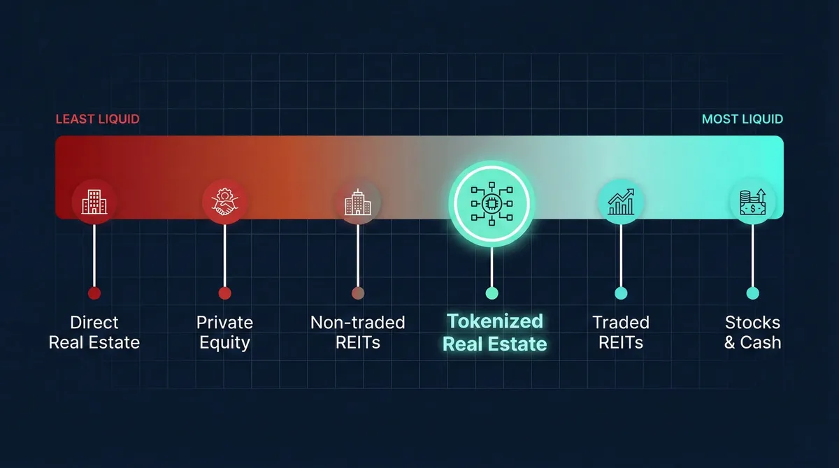 Но бинарная формулировка — «недвижимость неликвидна, акции ликвидны» — устаревает. Токенизация и платформы дробного владения создают среднюю категорию: недвижимость с умеренной ликвидностью, где инвесторы могут продавать части своих позиций за часы, а не месяцы, за долю традиционных издержек выхода.