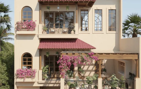 Благодаря использованию элементов, вдохновленных испанским стилем, таких как изогнутые входы, сводчатые интерьеры, открытые внутренние дворики и теплые средиземноморские тона, этот комплекс выглядит поразительно и сразу же привлекает внимание.