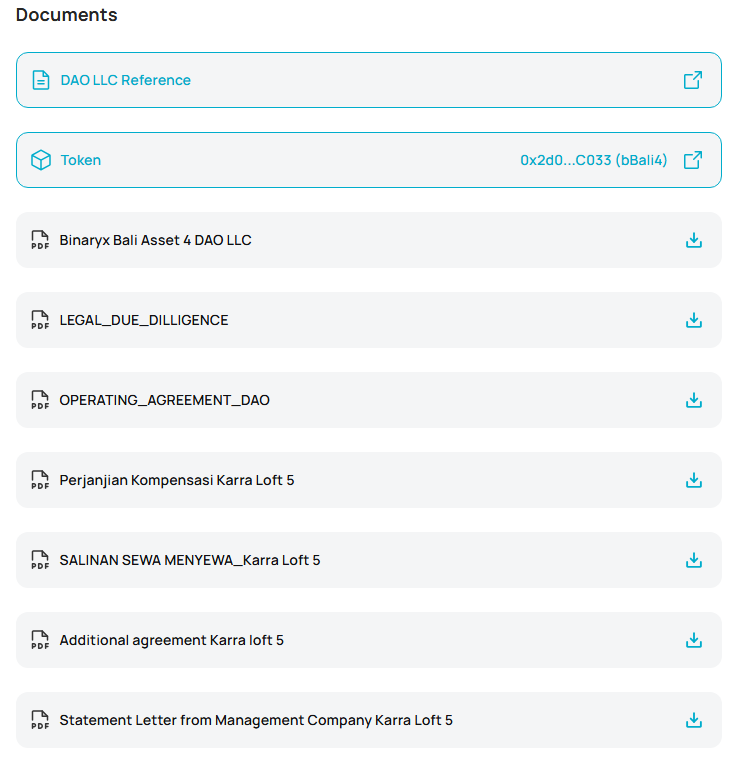 В случае с Karra Loft 5, который находится на Бали и сдается в аренду, Binaryx заказал Due Diligence у компании Bali Buisiness Consulting. На первой странице содержится перечень документов, а также краткая справка о непосредственном владельце земли, обладателе сертификата Hak Milik, подтверждающего право собственности на земельный участок.