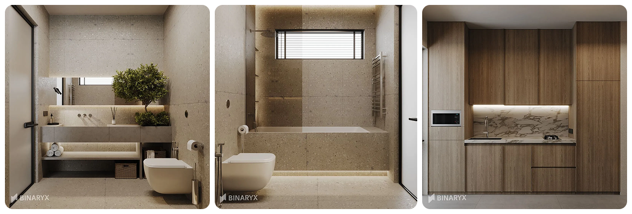 Кожен апартамент поєднує стиль і практичність. Візьмемо, для прикладу, юніт B22 (юніти B14 та A16 мають ідентичні характеристики), який незабаром буде доступний на Binaryx у статусі орендного активу — це 33 кв.м. простору з: