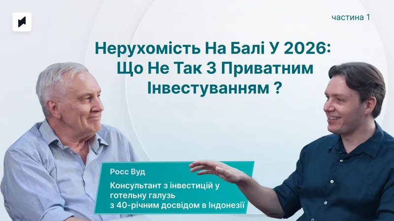 Стисле резюме: Нерухомість Балі у 2026 — у фазі пом'якшення, не обвалу. Середня завантаженість готелів у 2025 — 73,2% (-2,5% р/р), будівництво вілл підскочило на 27% у 2024 спричинивши надлишкову пропозицію, мораторій Ваяна Костера від вересня 2025 обмежив нову забудову. Реалістична рентна дохідність для бюджетного й середнього сегментів — 6–9%, не 20%. Росс Вудс (40+ років інституційної нерухомості, ex-Horwath HTL партнер, ex-PwC, ex-Prudential) бачить 2–3 роки до відновлення та визначає Убуд і Улувату як найсильніші мікроринки. Можливість для інвесторів з 10-річним горизонтом, що кількісно оцінюють просадку, вимагають прозорості й вибирають правильну локацію.