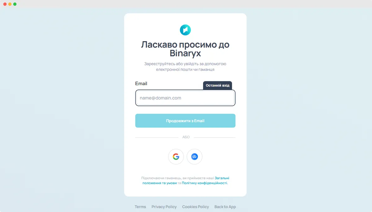 Тепер авторизація на Binaryx стала швидшою та безпечнішою. Ми оптимізували систему входу, щоб звести до мінімуму будь-які труднощі та зробити процес максимально зручним.