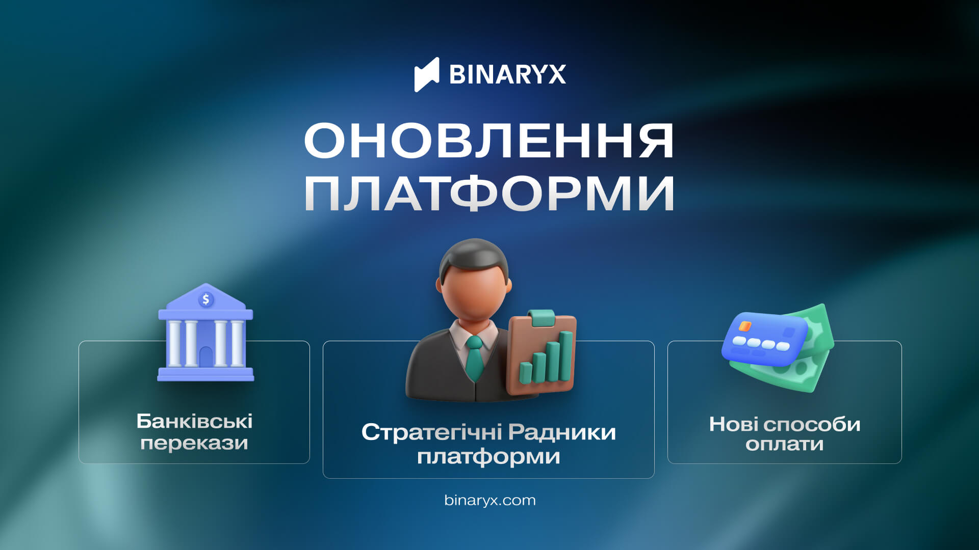 І готуйтеся до ще більшої кількості методів поповнення рахунку на платформі Binaryx, які будуть анонсовані в наступному оновленні.