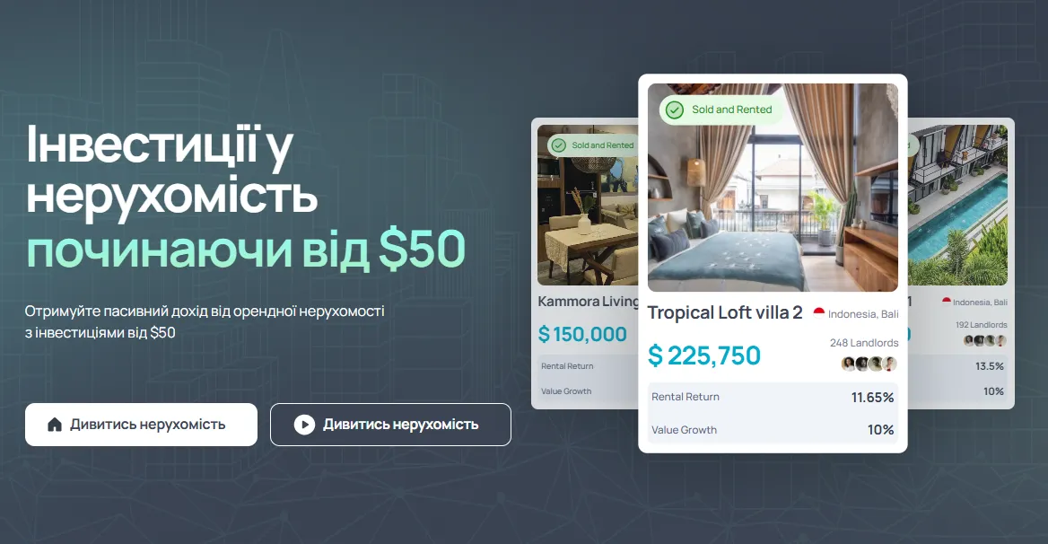 Ви можете створити обліковий запис, вивчити добірку готових до оренди об'єктів нерухомості та переглянути такі деталі, як місце розташування, потенційний дохід від оренди та очікувані прибутки. Знайшовши відповідний об'єкт, ви можете інвестувати в його частину.