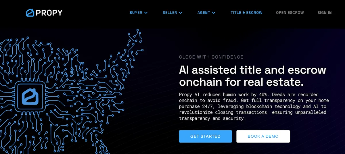 Propy дозволяє покупцям здійснювати операції з нерухомістю онлайн за допомогою смарт-контрактів, спрощуючи паперовий документообіг і підвищуючи прозорість.