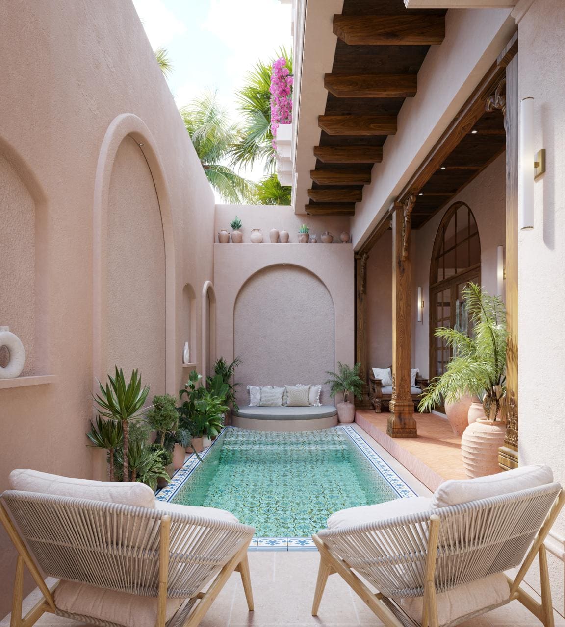 - Private pool (4.5 x 2.8m) integrated into courtyard design
