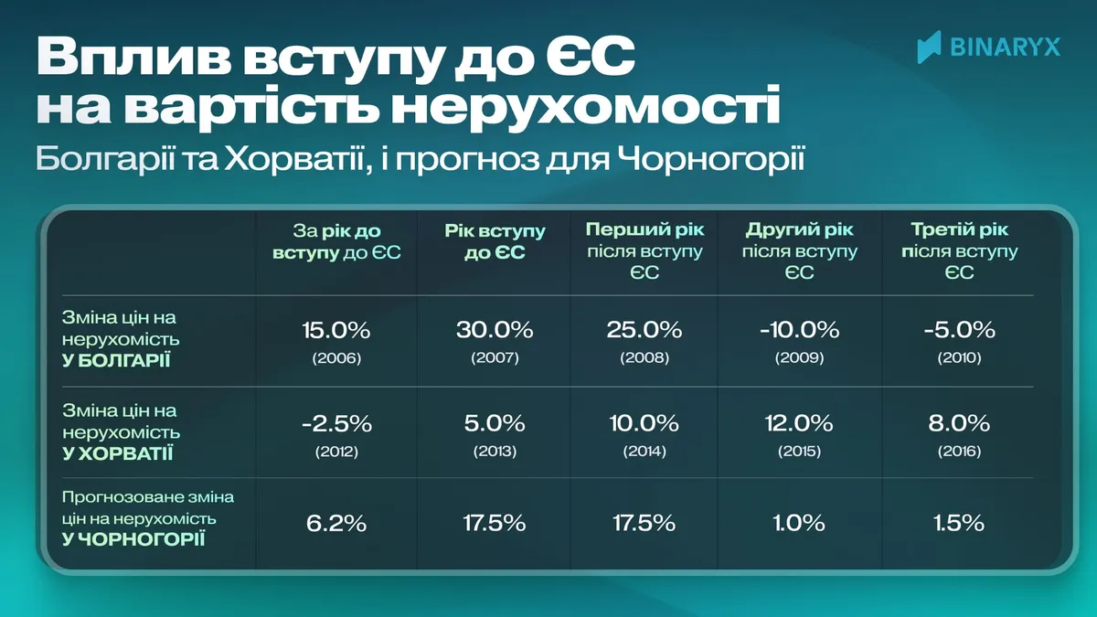 Зараз Чорногорія приваблює цифрових кочівників та інвесторів завдяки відносно низькій вартості життя, легкості придбання нерухомості та мінімальній бюрократії. Ціни на житло, харчування та послуги значно нижчі порівняно з багатьма західноєвропейськими країнами, і для іноземних покупців нерухомості немає жодних обмежень. Однак все це зміниться, як тільки Чорногорія стане членом ЄС. Європейські стандарти та регуляції, жорсткіші правила та наплив жителів Західної Європи на сонячне середземноморське узбережжя неминуче призведуть до підвищення цін на всі аспекти життя і бізнесу в Чорногорії.
