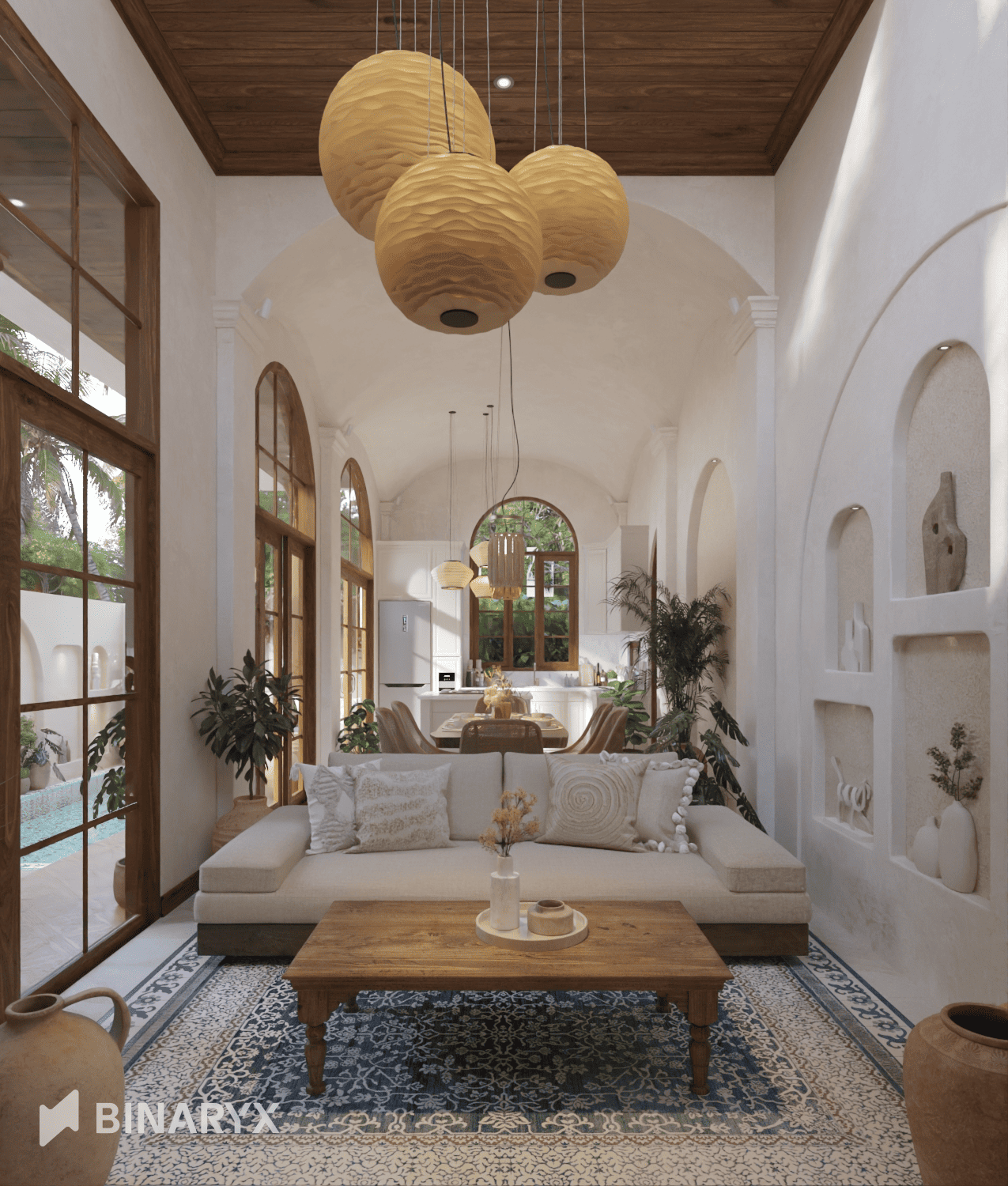 By bringing in Spanish-inspired elements such as curved entrances, vaulted interiors, open courtyards, and warm Mediterranean tones, the development delivers a striking look that instantly stands out.